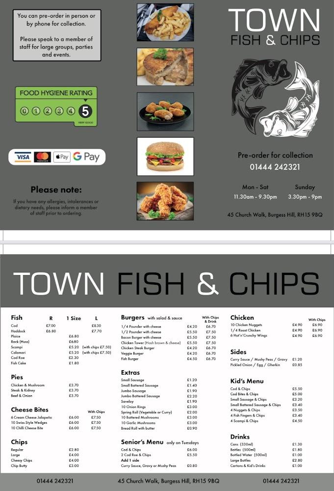 Nestled in the heart of Burgess Hill, Town Fish & Chips enjoys a prime location at 45 Church Walk. The restaurant is a community gem, serving residents for years with its iconic fish and chips. Accessibility is a priority here; the entrance is wheelchair-friendly, ensuring everyone can enjoy their meals. The cozy atmosphere and friendly staff make it a place where regulars feel at home. The restaurant operates every day of the week, welcoming families and individuals for lunch and dinner, reinforcing its role as a local staple.